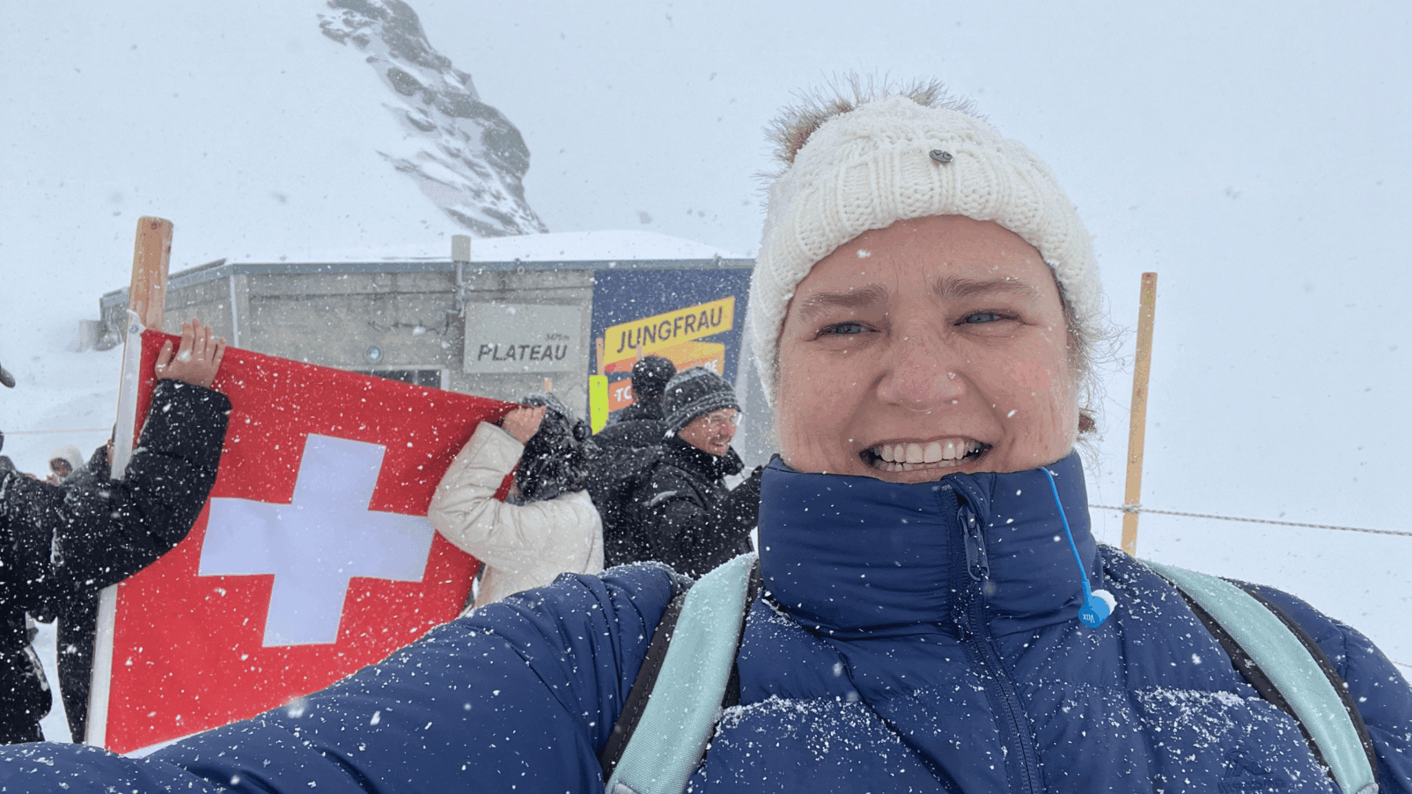The plan was to reach Jungfraujoch by gondola, but wind delays meant a Plan B train ride to the summit. Not a bad backup. At the top, it started to snow. Not Aussie slush, but proper, soft and fluffy snow. Yvette had never seen snow fall like that before and just stood outside watching it drift through the sky. The Jungfrau-Aletsch region is UNESCO World Heritage certified and known as the “Top of Europe,” so the views aren’t just impressive. They are officially recognised for their natural beauty, geological significance and cultural value.. and are protected for good reason.